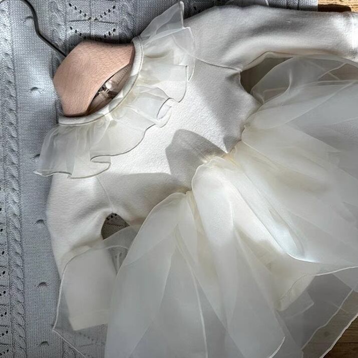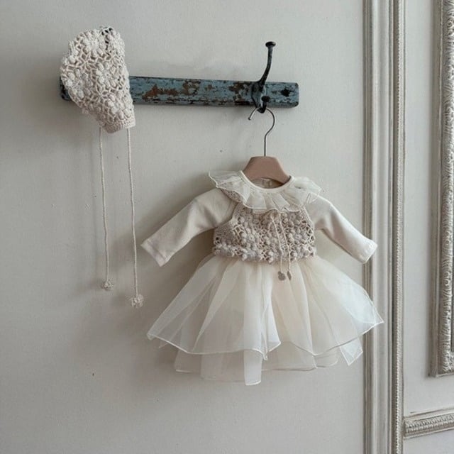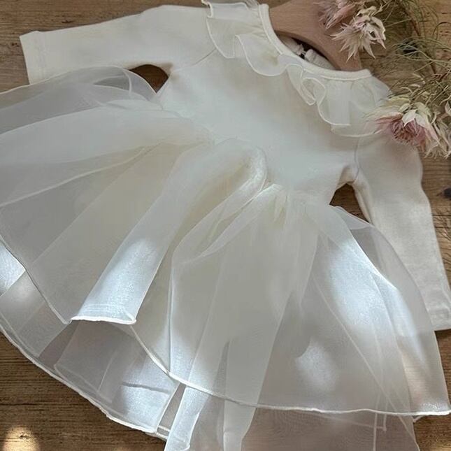 【BABY】チュール無地ワンピース風ロンパース