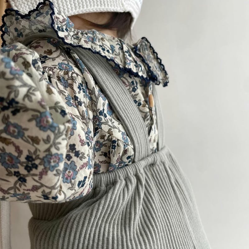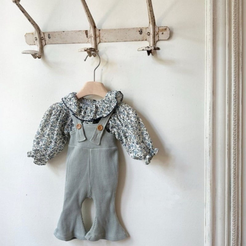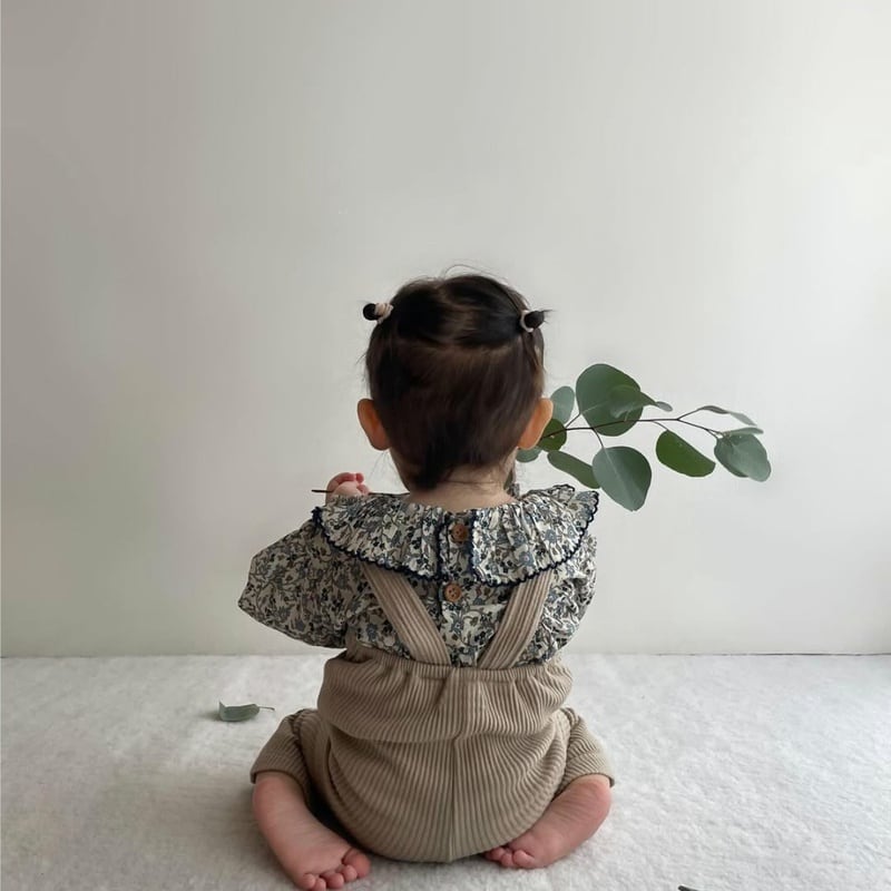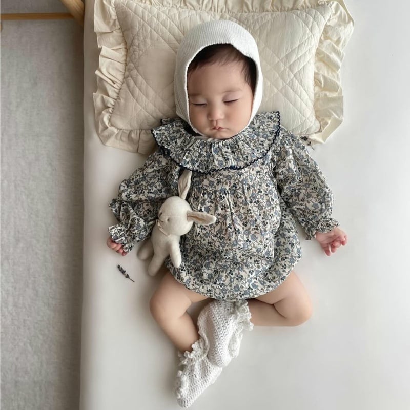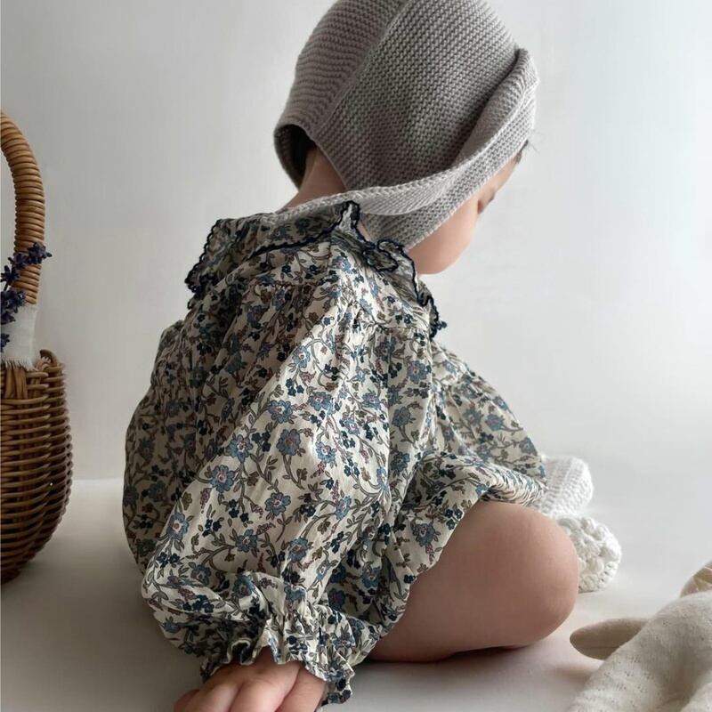 【BABY】韓国風 ブルー花柄ロンパース