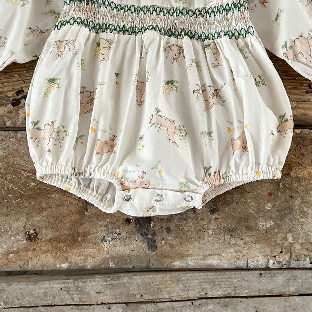 【BABY】秋新作 レトロウサギ柄長袖ロンパース