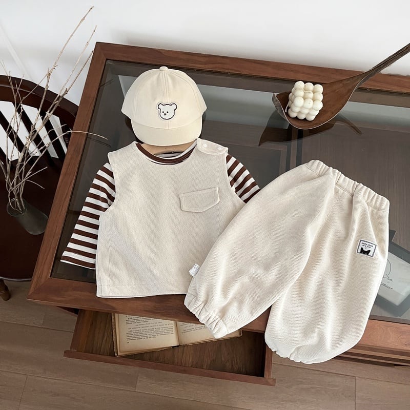 【BABY】秋新作 オシャレ無地ベスト&パンツ
